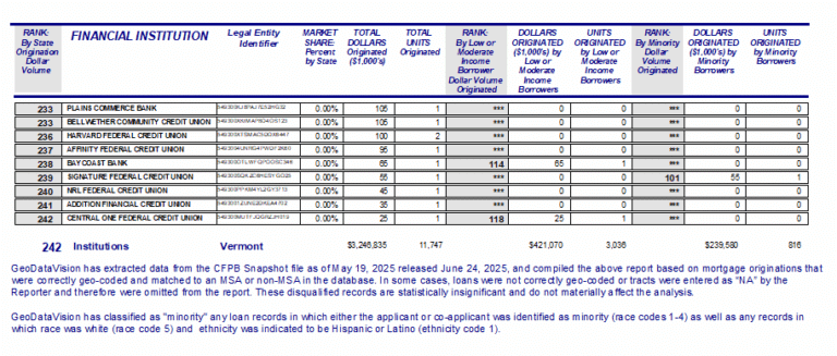 The FFIEC released the official 2024 HMDA Aggregate & Disclosure file in June. GeoDataVision uses that data to create special market rank and market share reports for markets everywhere in the USA. This data is invaluable for CRA and Fair…
